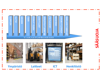 -Ympäristö: Hyllyt, rakennus, varastointi-järjestelmät, lay-out yms., joiden avulla ratkaistan tavaran käsittelyssä olevat liikuteltavan materiaalin staattiset vaiheet.